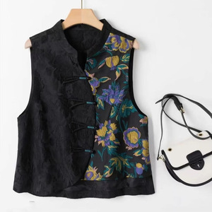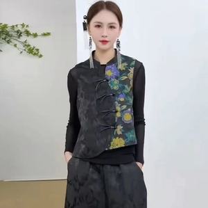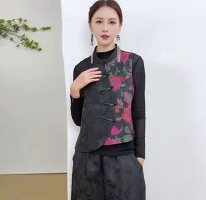 新中式国风冠乐皱桑蚕丝提花马甲盘扣设计无袖版型显瘦坎肩女马夹