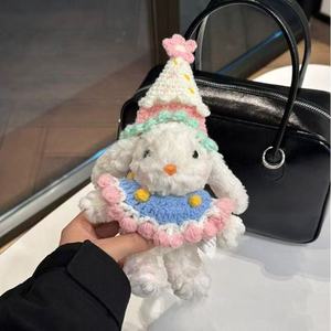 毛绒垂耳兔—米色花环裙+钥匙扣