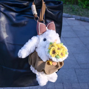 毛绒垂耳兔—咖色蝴蝶结向日葵+咖色手挂绳