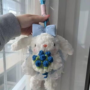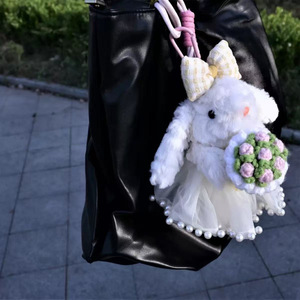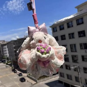 毛绒垂耳兔+粉色花束珍珠裙款+粉色手绳钥匙扣