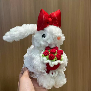 毛绒垂耳兔—红色手棒花+红色手绳钥匙扣