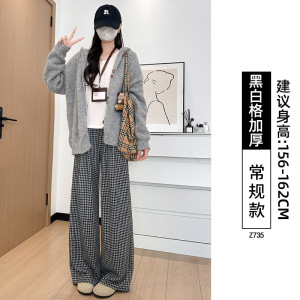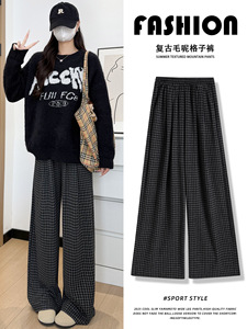 黑灰色格子裤子女2025新款秋季高腰垂感宽松休闲小个子毛呢阔腿裤