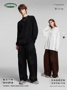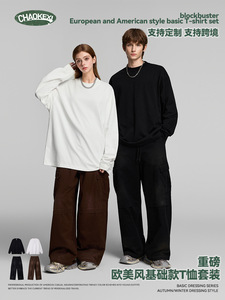 CKX男装春秋青少年潮牌纯色基本款美式复古套装男女休闲T恤两件套