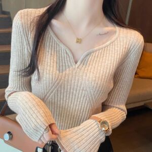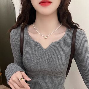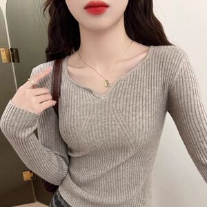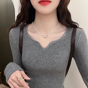 V领针织打底衫女春秋季2025新款设计感短款毛衣修身内搭长袖上衣