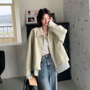 韩系设计感拼接假两件外套女秋季2025年新款超火宽松休闲工装夹克