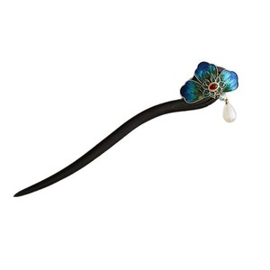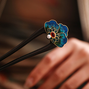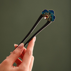 原创非遗时尚小众国风掐丝蚕丝绒花U型檀木发簪新中式纯手工发饰