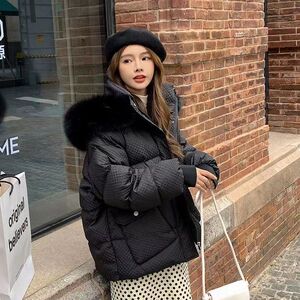2025羽绒服冬季2025新款短款小个子加厚宽松外套大毛领美拉德学生