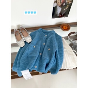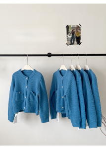 2025实拍秋季新款 复古蓝厚实感毛衣针织开衫