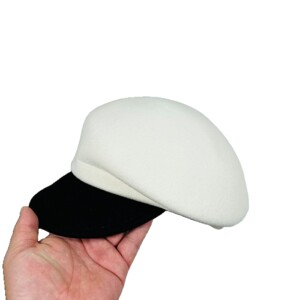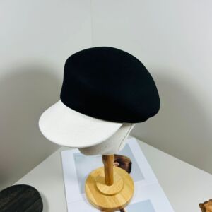 秋冬日本CA4LA同款不对称纯羊毛拼色鸭舌帽女简约光板马术帽毡帽