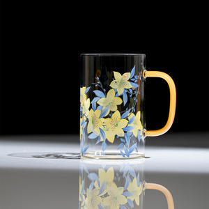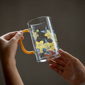 墨己瑞璃手把玻璃水杯耐高温马克杯办公杯花茶茶杯个人专用杯子