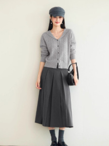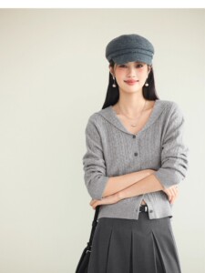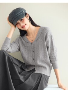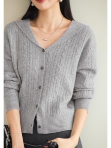 伊*L羊毛软糯V领麻花设计海军领羊毛针织开衫2025秋季1G9931551
