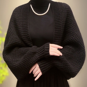 韩版纯色2025新款密织开衫长袖披肩外搭高端女士外套时尚洋气高档