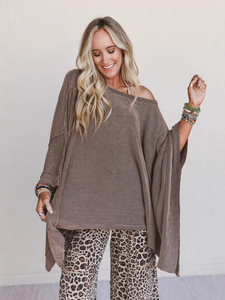 欧美休闲百搭纯色蕾丝花边针织衫女早秋薄款宽松螺纹开衫一件代发