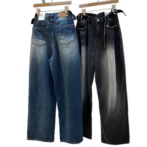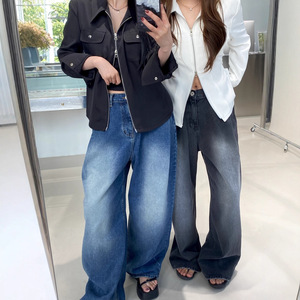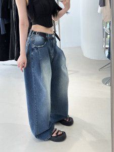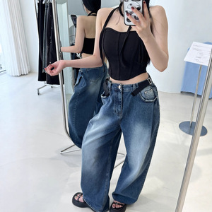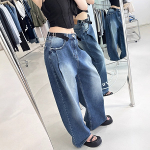 2025秋季新款韩版百搭时尚松弛感穿搭腰部卡扣宽松阔腿牛仔裤长裤