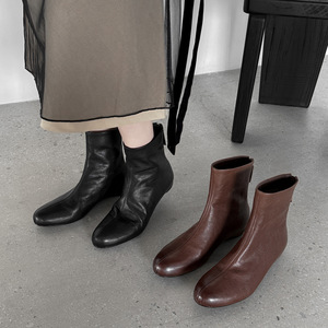 真皮法式气质韩系小踝靴坡跟及踝瘦瘦靴洋气坡跟小短靴女春秋单靴