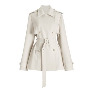 跨境英伦风翻领双排腰系带风衣女5秋季新小个子气质短外套雪尼尔