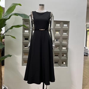 亚马逊轻熟秋夏季宴会显身材撞色收腰伞摆长款连衣裙配皮带2025新