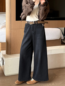 十三行女装辣妹复古大阔腿牛仔裤女秋季高腰宽松小个子直筒九分裤