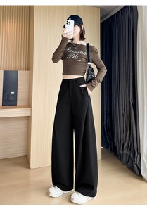 侧压褶阔腿裤女2025秋季新款时尚松紧腰休闲裤窄版显瘦女裤风笛裤