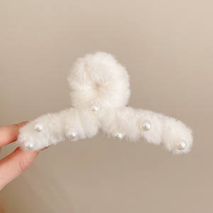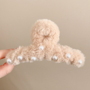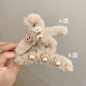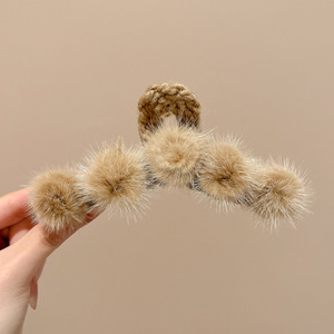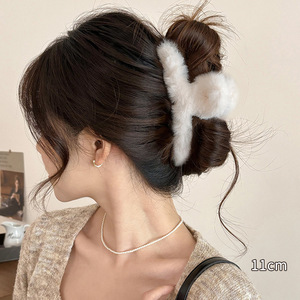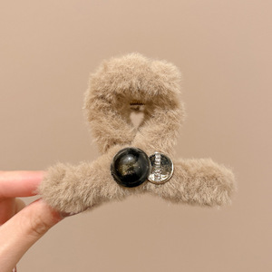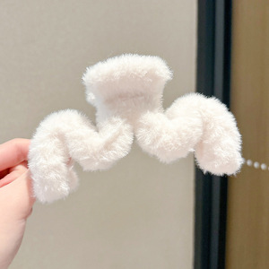 美拉德可爱毛毛鲨鱼夹韩系轻奢鲨鱼夹后脑勺发量多盘发夹百搭头饰