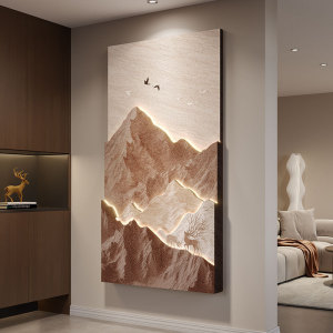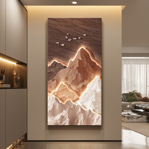 轻奢高级感入户玄关装饰画正对门背有靠山挂画走廊过道客厅壁灯画