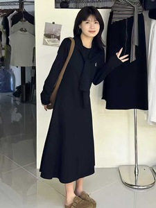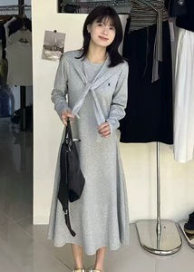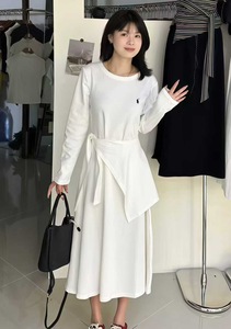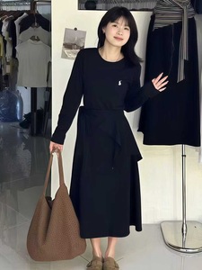 RL拉夫披肩长袖长款连衣裙小马刺绣拼接韩系优雅25秋季新款显瘦