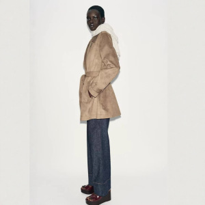 YALTEI跨境速卖通ins欧美外贸 女装 法式反绒皮效果风衣3046279
