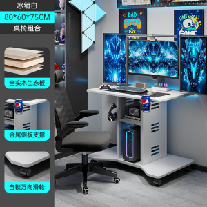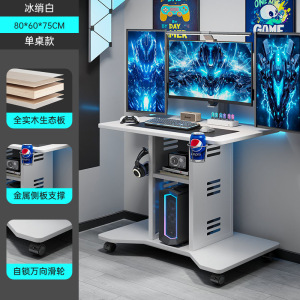 实木电脑桌家用卧室电竞桌台式可放主机移动小桌子床边办公写字桌