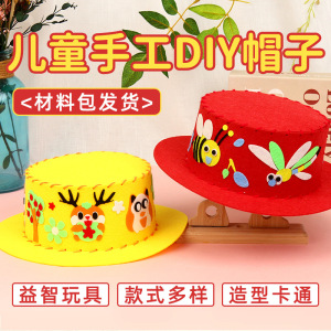 不织布帽子幼儿园手工材料包制作立体粘贴画创意缝制儿童益智玩具