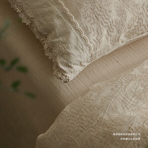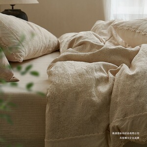 法式公主风~棉麻花边小蕾丝四件套提花被套裸睡双人床单床上用品
