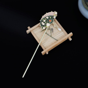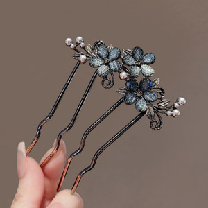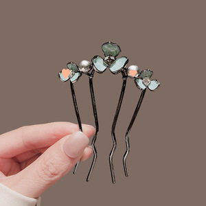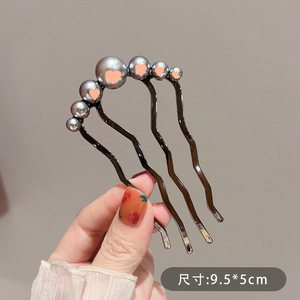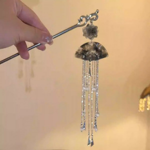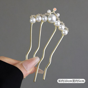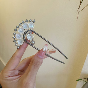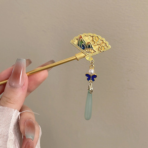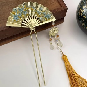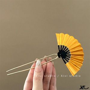 古风金色扇子发簪新中式高端头饰u型发钗秋冬氛围感优雅盘发簪子