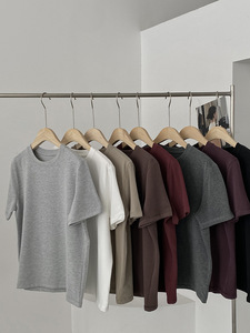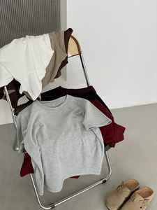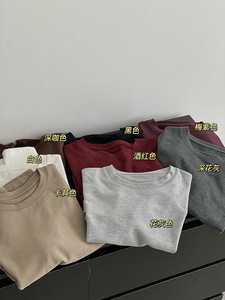 秋冬新款麻丝线baby绒正肩短袖T恤女圆领磨毛短袖纯色厚实打底衫