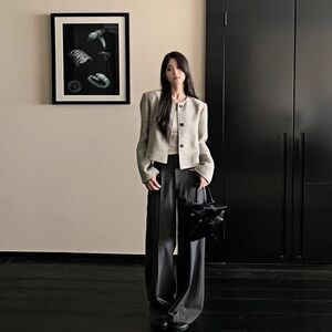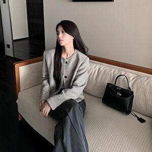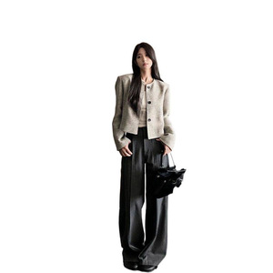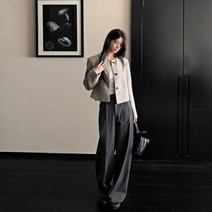 春秋新款复古圆领单排扣上衣女条纹宽松小香风