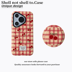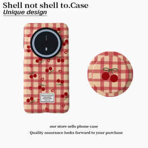 格纹红樱桃磁吸菲林二合一支架适用小米15p手机壳保护套华为vivo