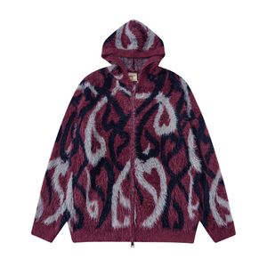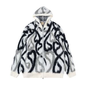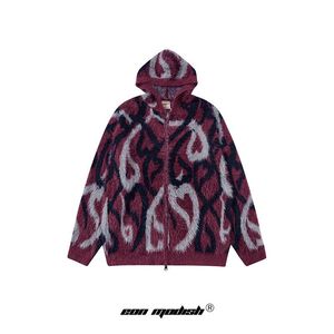 Eon Modish 25冬季新New美式复古拼色连帽重工针织开衫毛衣