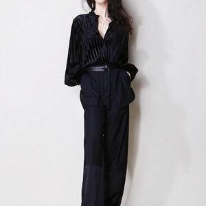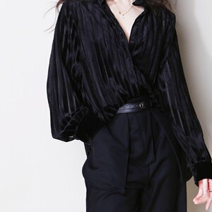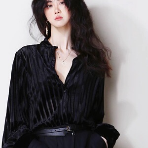 秋冬黑色复古金丝绒衬衫2025新款女装高级感气质遮肚显瘦百搭小衫