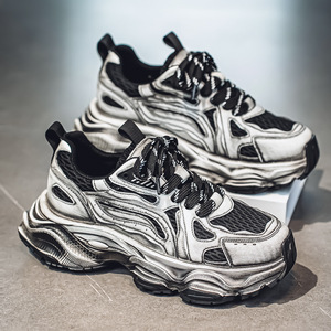 莆田男鞋夏季2025新款透气网面休闲运动跑步鞋男士厚底增高老爹鞋