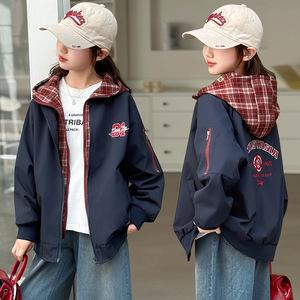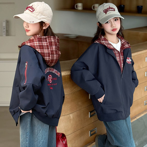 女童外套春秋款2025新款儿童秋装休闲上衣中大童假两件秋季冲锋衣