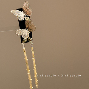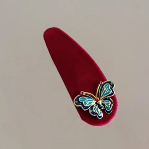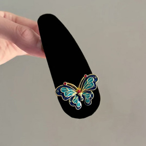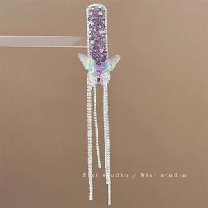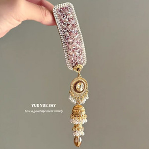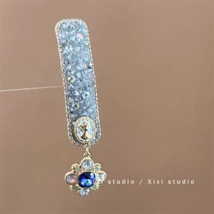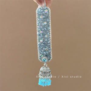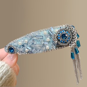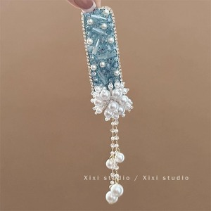海岸风声蓝色闪钻流苏发夹新中式浮雕侧边夹气质水滴夹盘发器