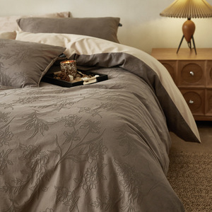 中式复古风全棉提花磨毛四件套秋冬保暖柔软纯棉床上用品被套床单