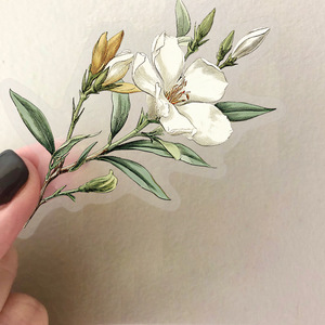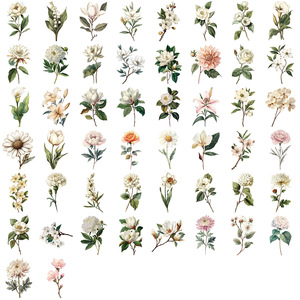 50张卡通复古白色长枝花朵贴纸装饰DIY手机壳水杯滑板PET批发贴纸