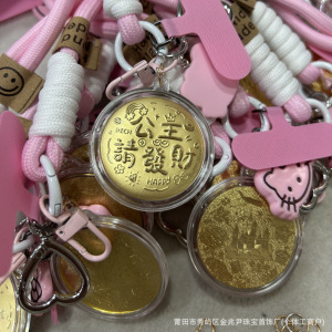 999足金黄金KT猫钥匙招财哈喽KT猫手机挂坠包包挂件送女友礼物