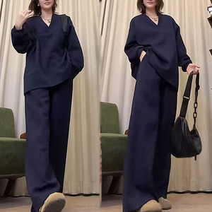 慵懒风时尚气质套装女秋冬新款韩版宽松大码高级感阔腿裤两件套厚