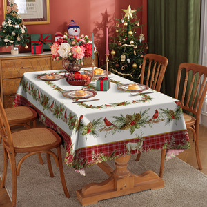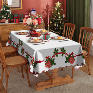 跨境涤纶桌布数码印花圣诞节日装饰餐桌布艺防水防油台布节日装饰
