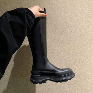 牛皮版~增高真皮松糕厚底骑士靴女士高筒靴子弹力长靴高跟长筒靴