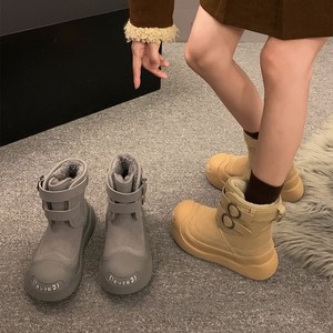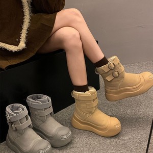 开口笑雪地靴男美式丑萌大头马丁靴女冬季加绒保暖情侣东北大棉鞋