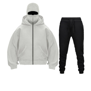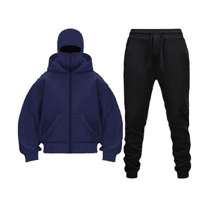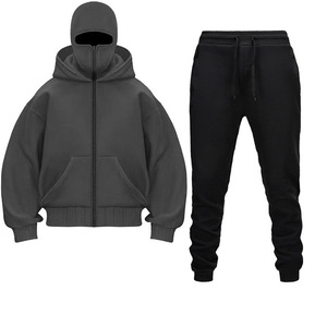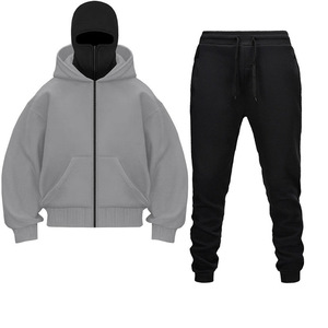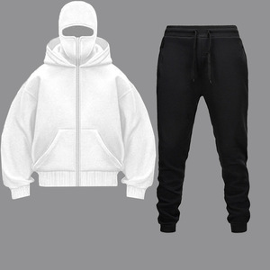 跨境 新款双帽拉链连帽卫衣DIY光板男女秋冬情侣拉链帽衫卫裤套装