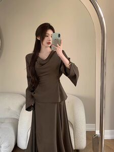大码2025秋季新款女装套装法式气质上衣感显瘦半身裙子两件套