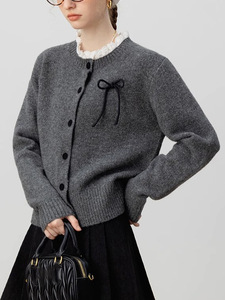 2025拼接蕾丝慵懒气质毛衣开衫女秋韩版蝴蝶结设计感通勤针织衫