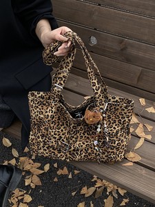 跨境豹纹松弛感托特包女2025秋冬新款百搭通勤大容量单肩腋下包